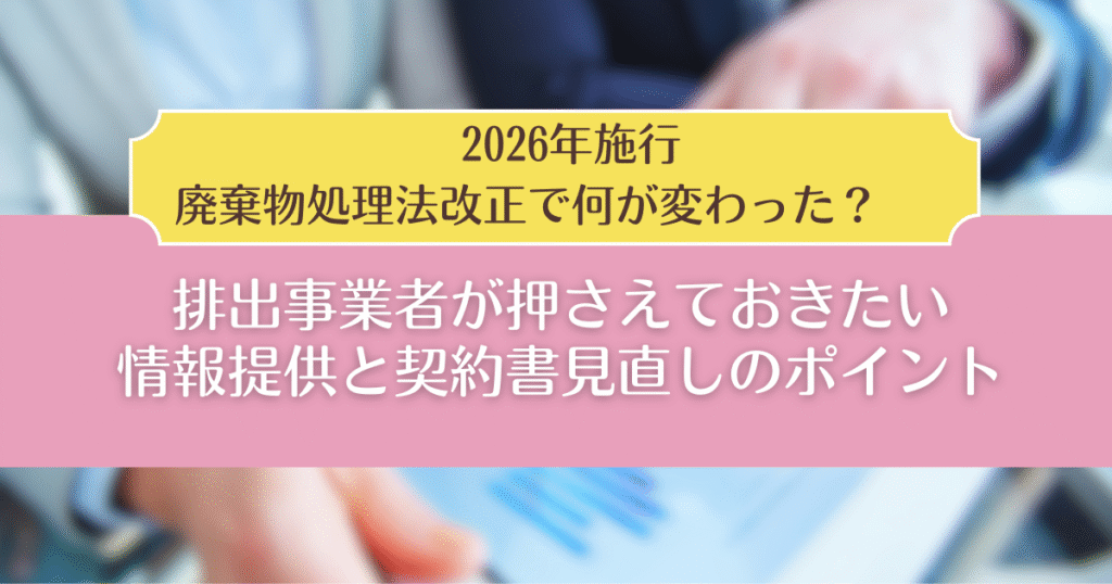 2026年1月に施行された廃棄物処理法施行規則の改正は、産業廃棄物の処理を外部へ委託している事業者の方にとって、一度は内容を確認しておきたい重要な法改正になっています。