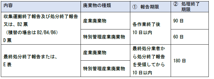 →収集運搬又は処分が終了してから電子報告又は書面を送付する期限